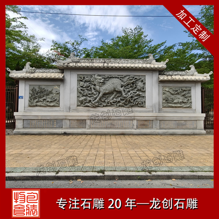 照壁雏形可追溯至汉代,早期为宫苑贵族专用;唐宋渐入寺院、官邸;明清普及至民间宗祠、大院与园林,成为身份与家风的载体。由壁座(须弥座 / 素座,承重)、壁身(主体,雕刻核心区)、壁顶(仿传统屋顶,歇山 / 硬山 / 悬山,防雨水侵蚀)三部分组成。