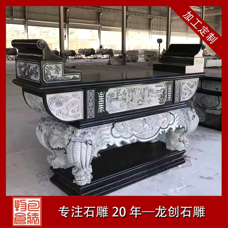 从选材、切割、塑形到精雕细琢,每一步都凝聚匠人心血。工匠以刀为笔,以石为纸,将传统工艺与文化寓意融入其中,使冰冷的石材拥有温度与灵魂。石雕供台不仅坚固耐用、不易损坏,还能历经岁月洗礼而不腐不朽,如同家族信仰与文化传承一般,长久留存。
