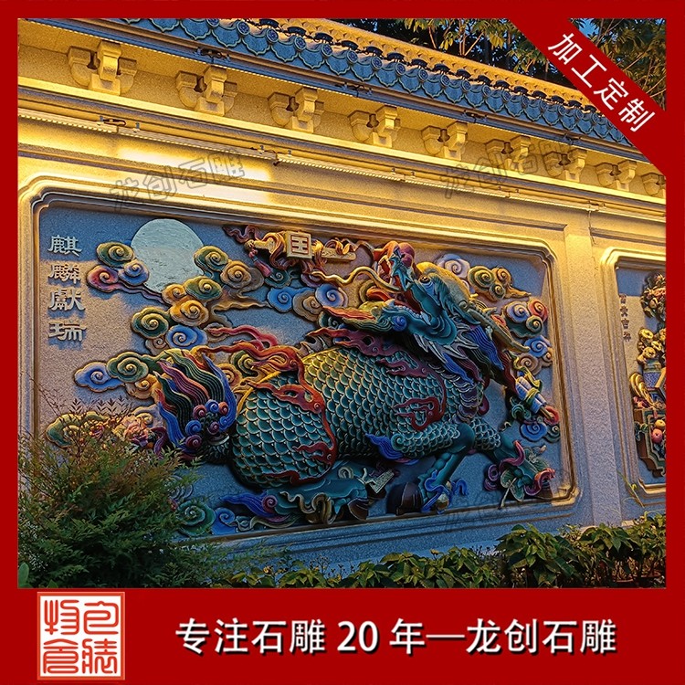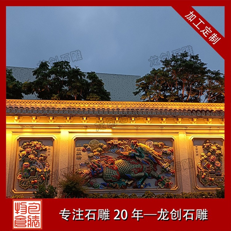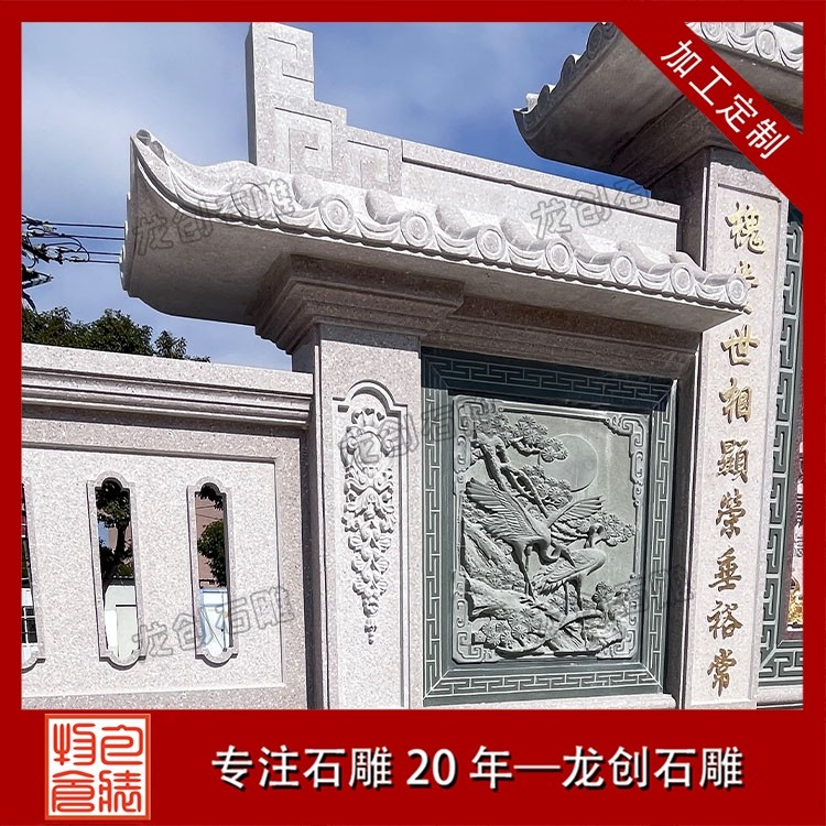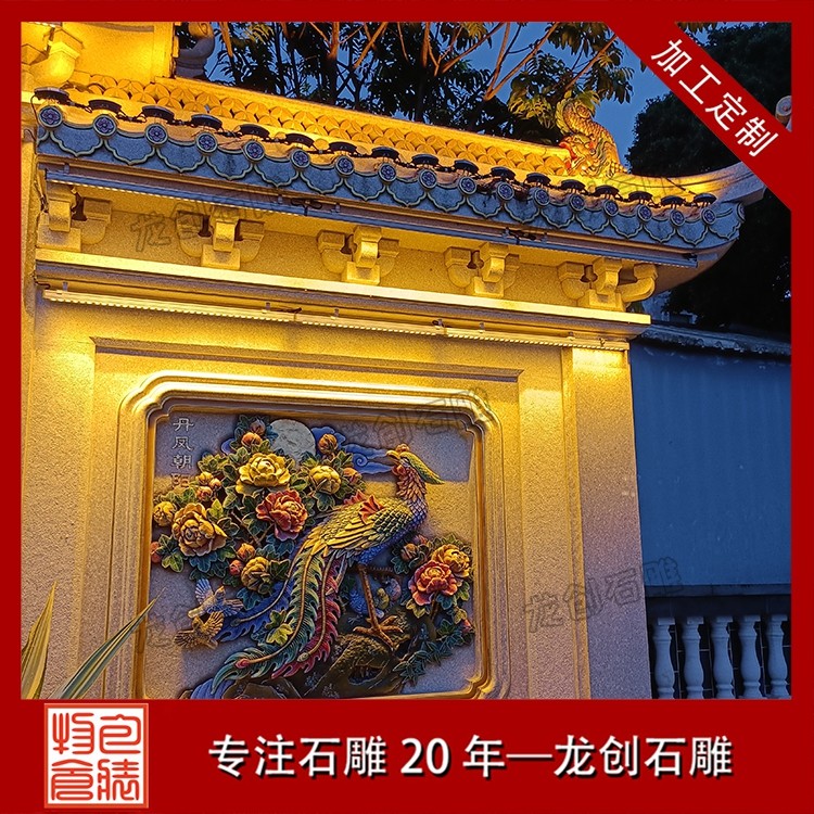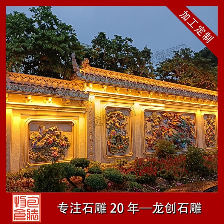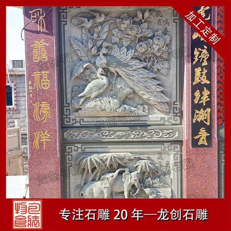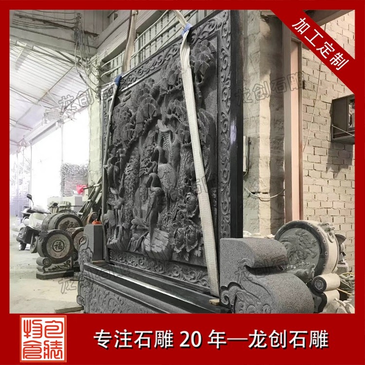 其二,意境含蓄内敛,彰显中式人文情怀。中式庭院讲究“藏而不露”,石雕照壁浮雕恰好契合这一美学理念,既巧妙遮挡院内景致,避免“开门见山”的直白,又以浮雕纹样传递美好期许——龙凤呈祥彰显尊贵,松鹤延年寄托福寿,鹿竹同春寓意平安,山水花鸟展现自然之美,让冰冷的石材承载起温暖的文化内涵与家族期盼。