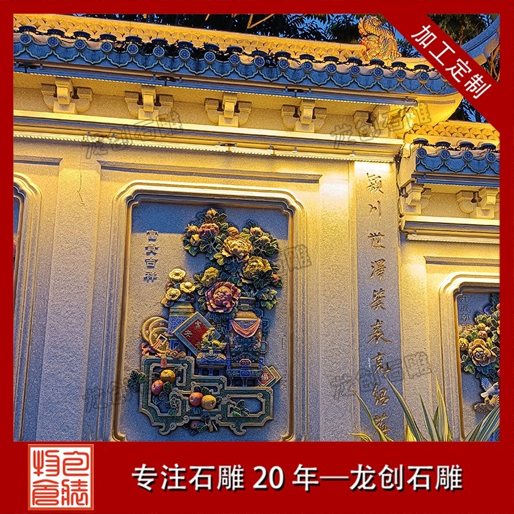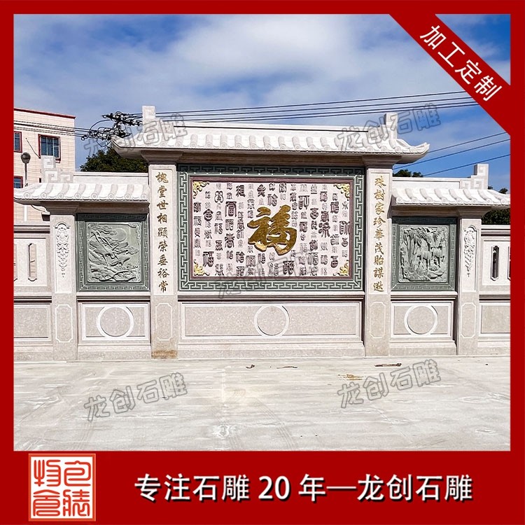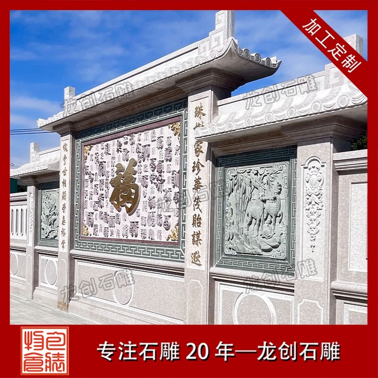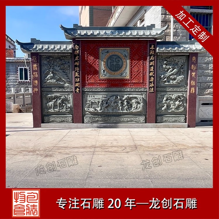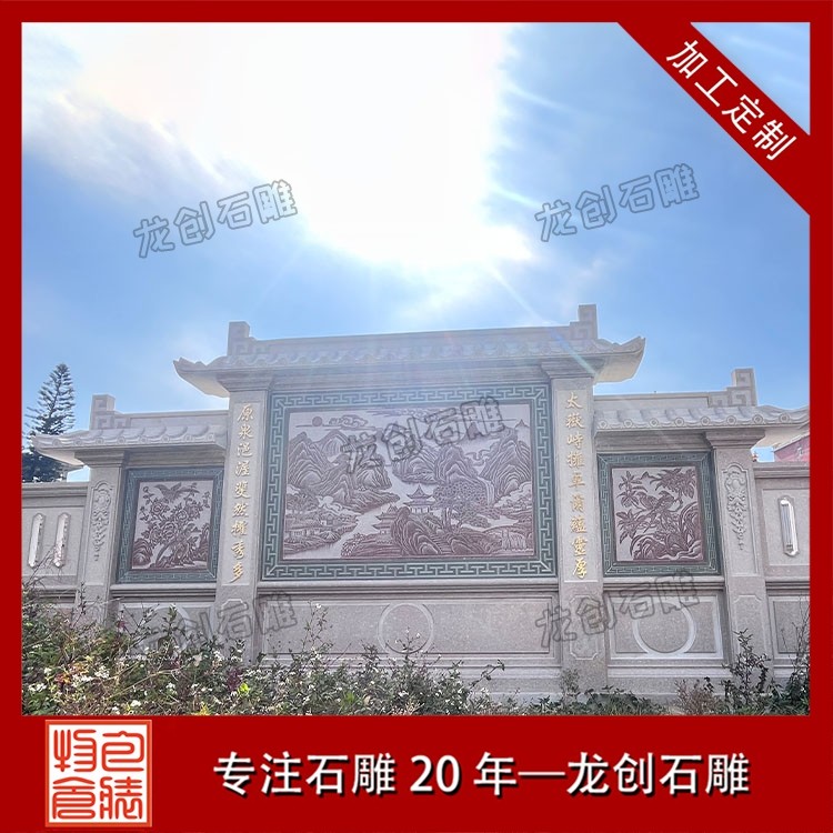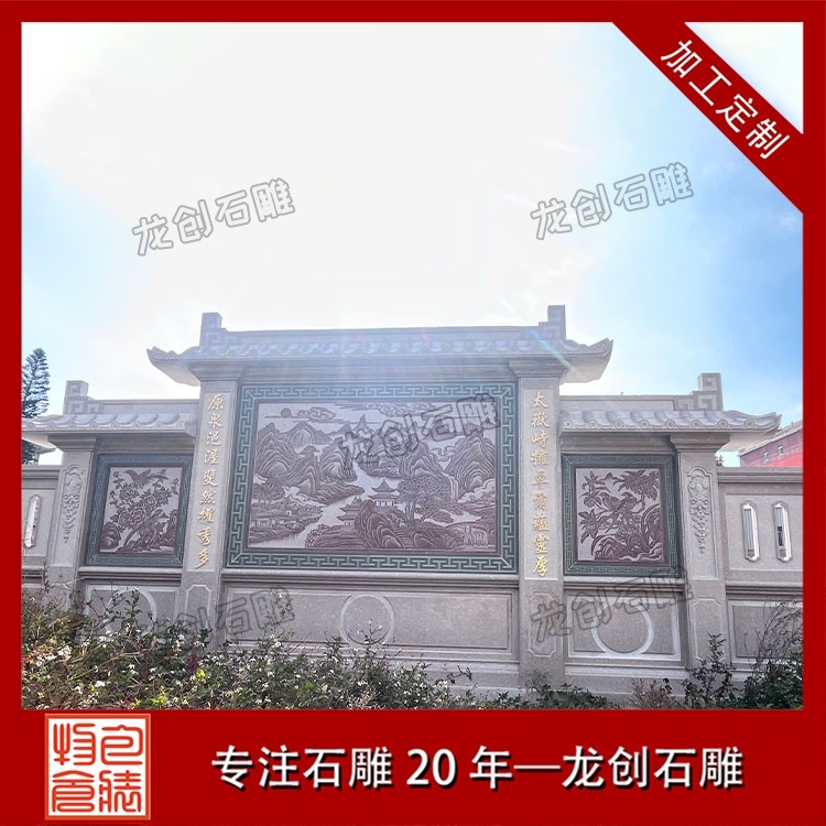 其三,适配性极强,兼顾多元庭院风格。无论是古典中式庭院的庄重雅致,新中式庭院的简约轻奢,还是乡村庭院的古朴自然,石雕照壁浮雕都能灵活适配。通过调整浮雕的纹样复杂度、石材种类与尺寸规格,可与庭院大门、围墙、绿植等元素融合,形成浑然一体的装饰效果,兼具实用性与艺术性。