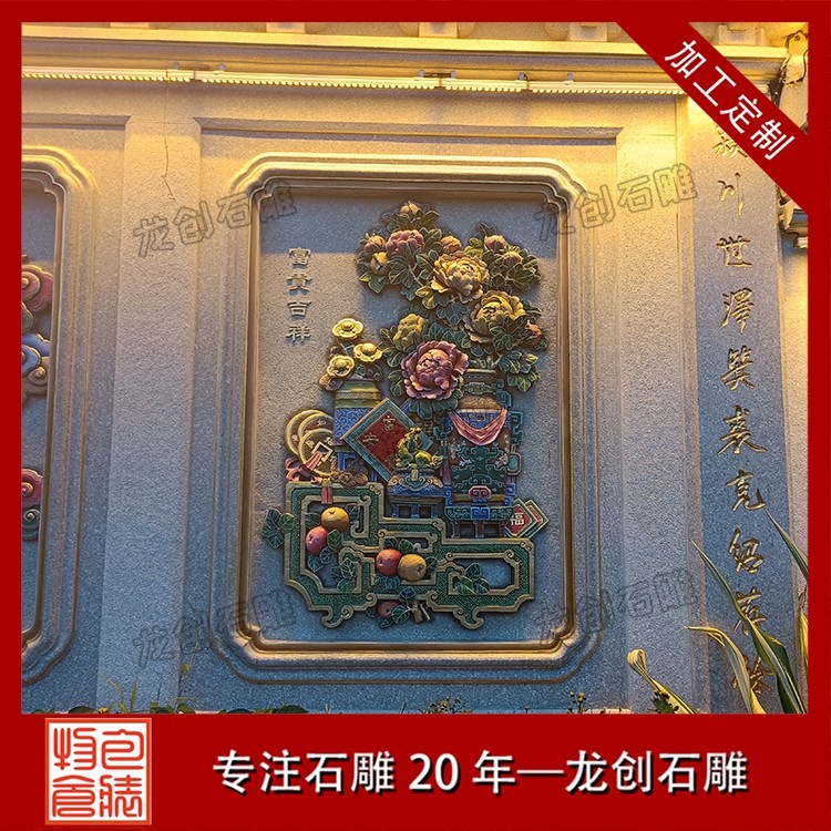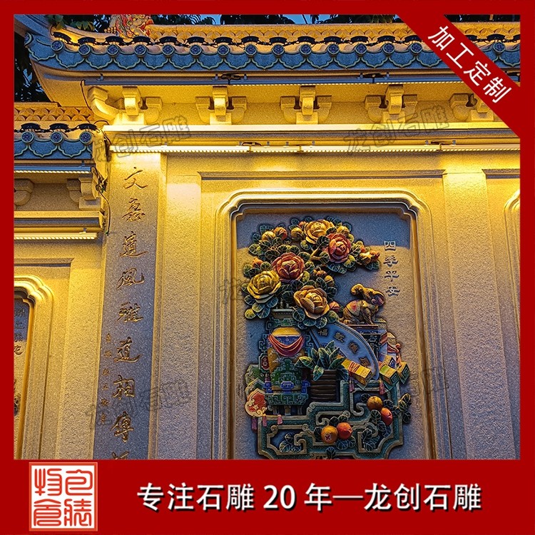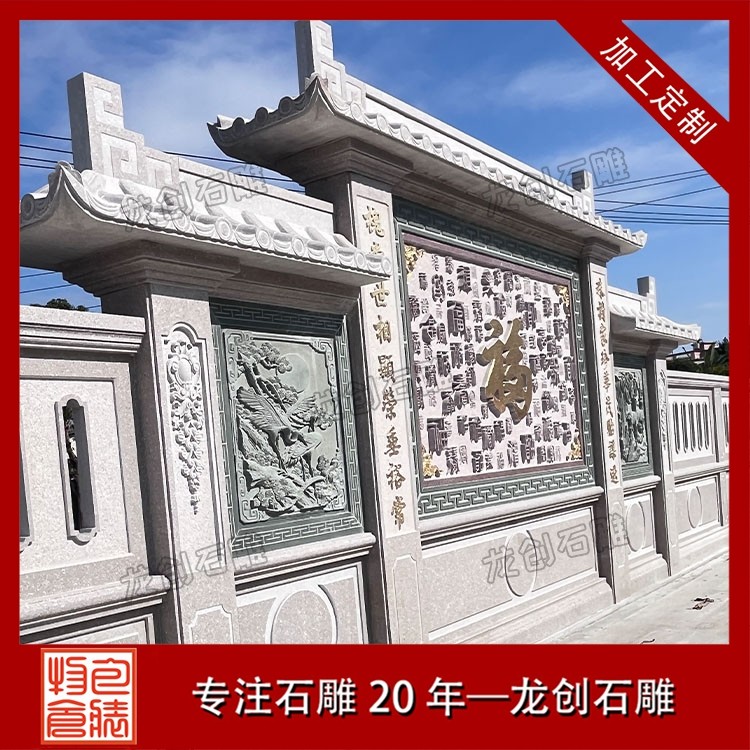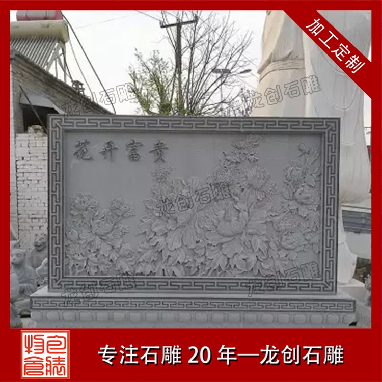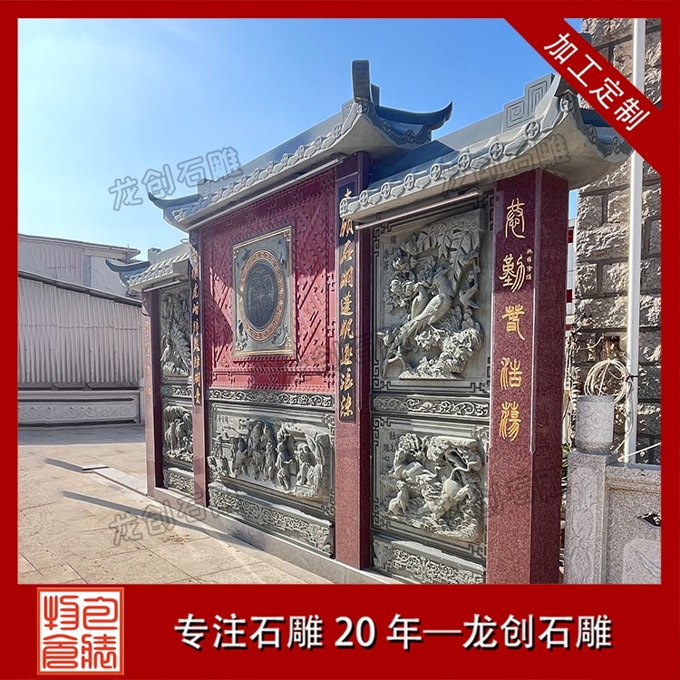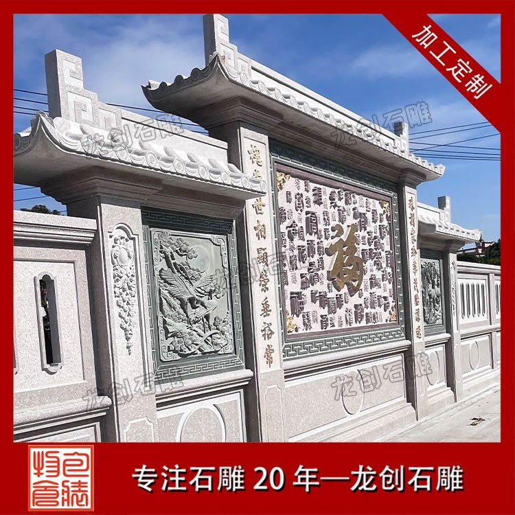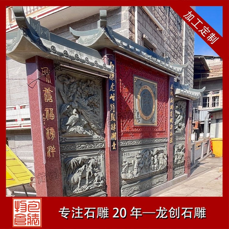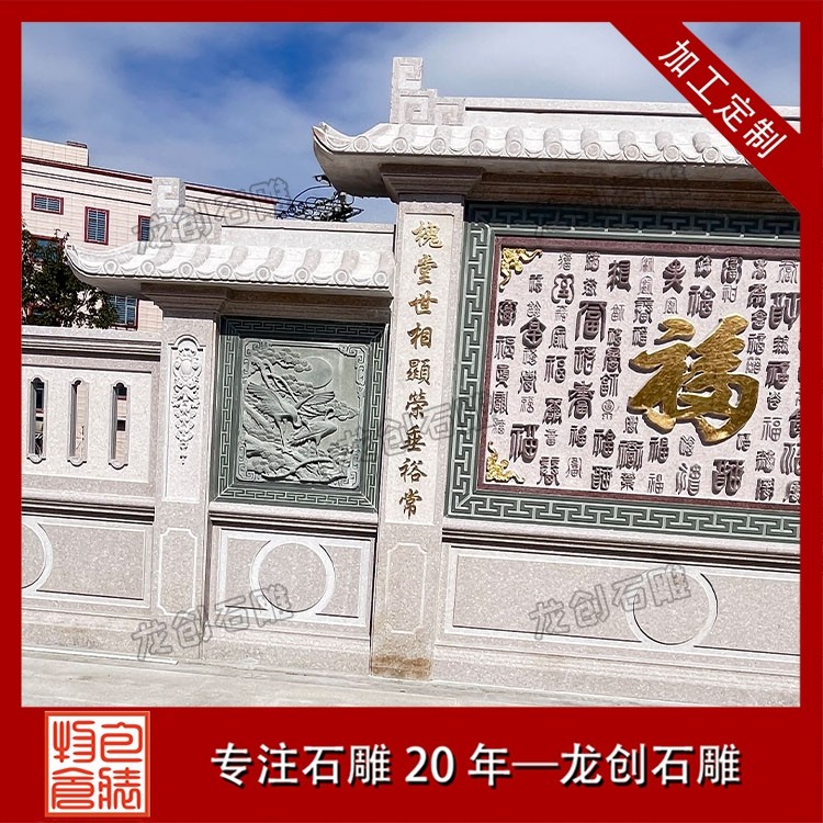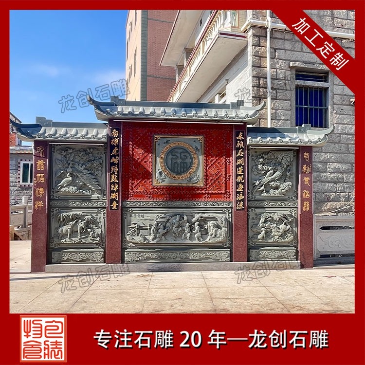其一,视觉层次感突出,打造庭院的惊艳。作为庭院大门口的视觉焦点,石雕照壁浮雕以立体雕刻工艺打破平面墙面的单调,线条流畅的浮雕纹样与天然石材的质感相得益彰,无论是简约大气的线条设计,还是繁复精美的吉祥图案,都能瞬间提升庭院大门口的整体档次,让到访者直观感受到主人的审美格调与家族底蕴。