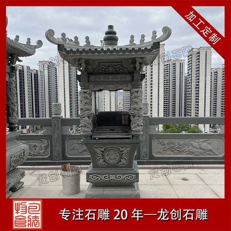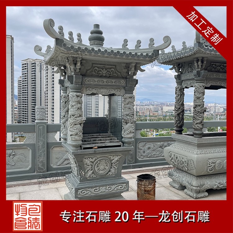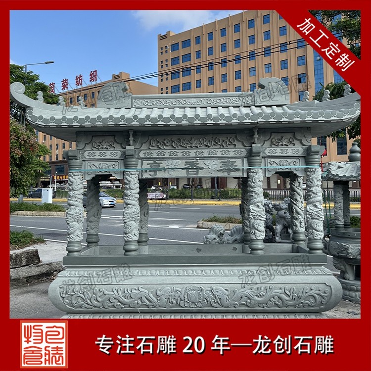 石材质地坚硬,耐高温、耐腐蚀,无惧风雨日晒,户外长期使用不易开裂变形,安全承接香灰,防风聚火,适配各类户外祭祀场景。炉身可雕刻龙凤、莲花、祥云等吉祥纹饰,工艺细腻,造型庄重,既承载香火之礼,又传递祈福纳祥的美好寓意。