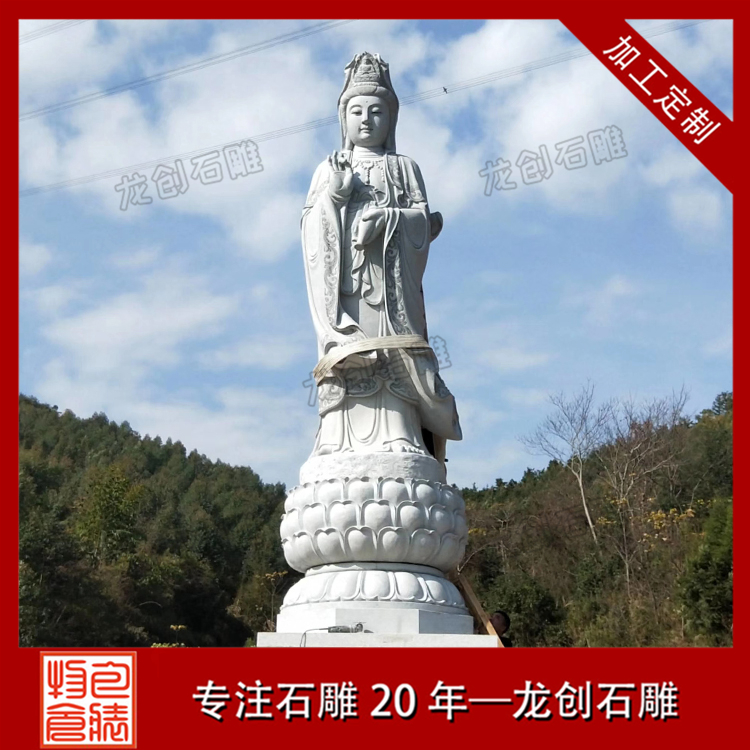 一般石雕四面观音像大多以站姿为主,尤其是室外的大型石雕观音菩萨像,给人一种慈祥、庄重、安静、随和、普度众生的感觉。泉州惠安龙创石雕制作的大型石雕观音菩萨像,采用优质的石材精雕细琢而成,善用千年文化雕凿工艺的研究、传承、融合和发扬,使石雕作品承载艺术文化、体现更多社会价值。石雕观音批发厂家,龙创石雕,欢迎您随时来电咨询。