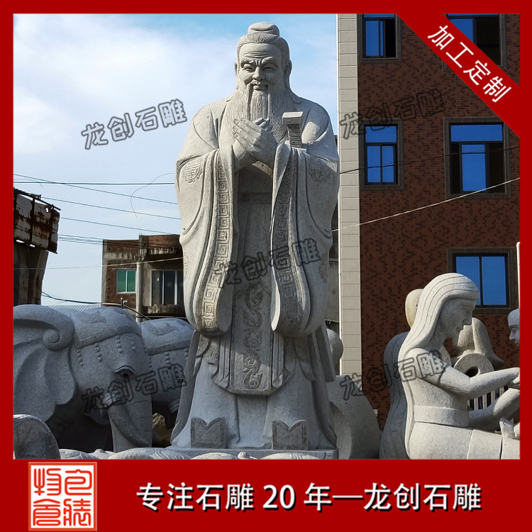 石雕孔子半身像、孔子半身像雕塑、石雕孔子站立像,都可以找我们龙创石雕定制,我们欢迎您的来电咨询。